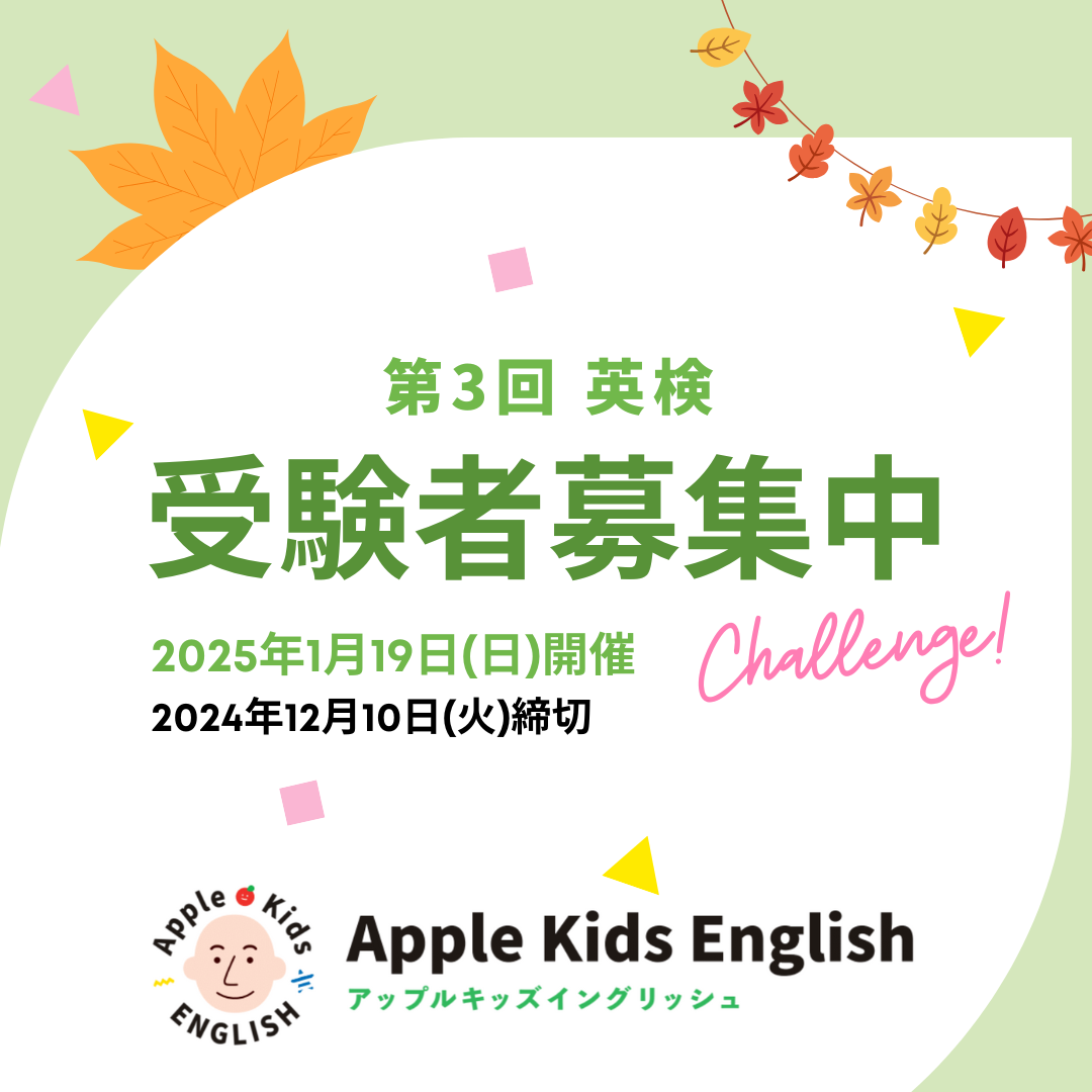 2025年度、第1回英検の受験者を募集します! アップルキッズは準会場のため …